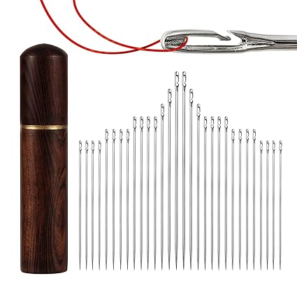 TITLE: 30 Pcs Self-Threading Needles Set for Stitching, Quilting, Embroidery & Hand Sewing | Multiple Sizes with Wooden Case