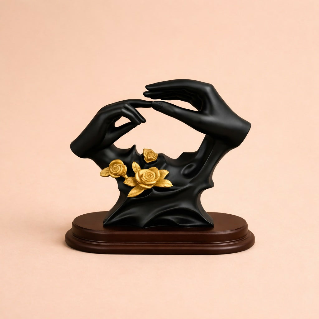 Bring a touch of modern elegance to your space with this abstract hand sculpture featuring beautiful gold floral accents. Designed with a premium finish and artistic