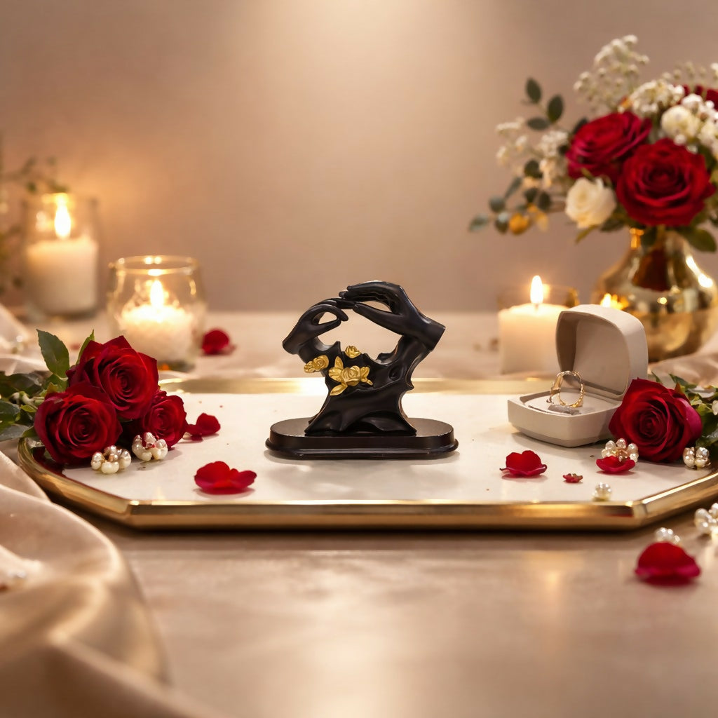 abstract hand sculpture, black showpiece decor, modern home decor, decorative statue, tabletop decor item, office desk decoration, artistic figurine, luxury decor item, gift item, housewarming gift, living room decor, floral sculpture decor