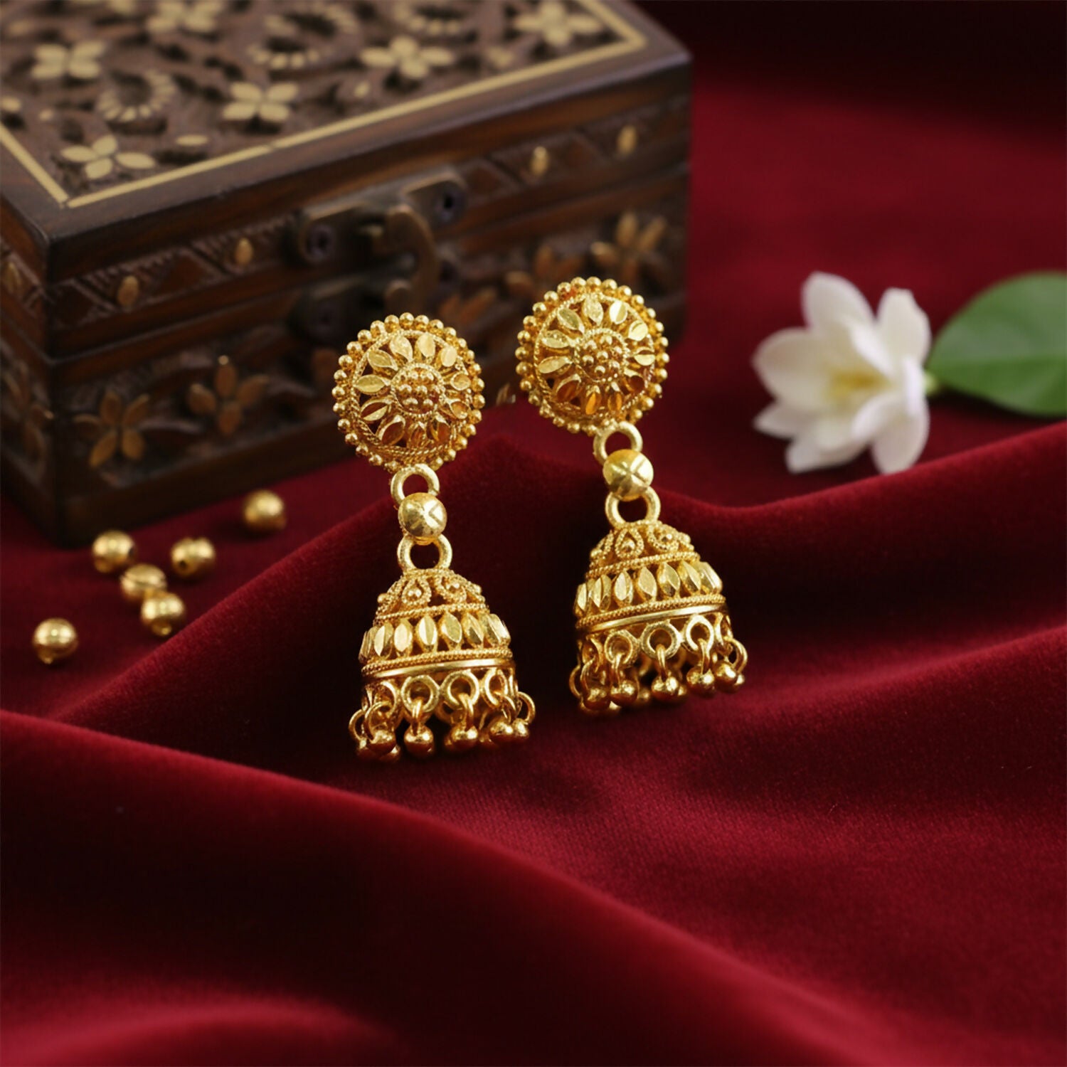 Beautiful Gold Plated Traditional Jhumka Earrings for Women Party Wear