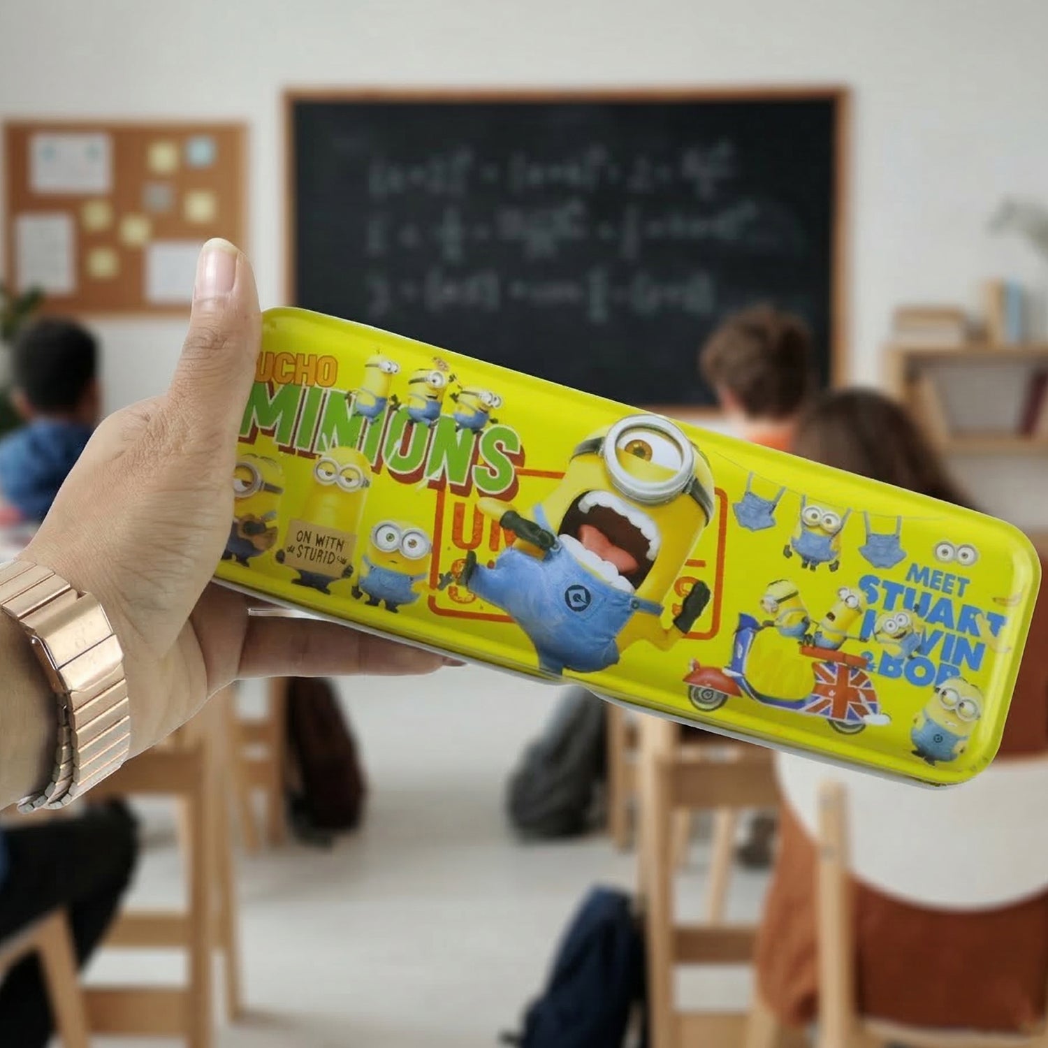 Cartoon Themed Metal Pencil Box with Cute Design is perfect for organizing school stationery with style. This cartoon pencil box metal design works as a kids metal pencil case that keeps pencils, erasers, and pens safely stored.