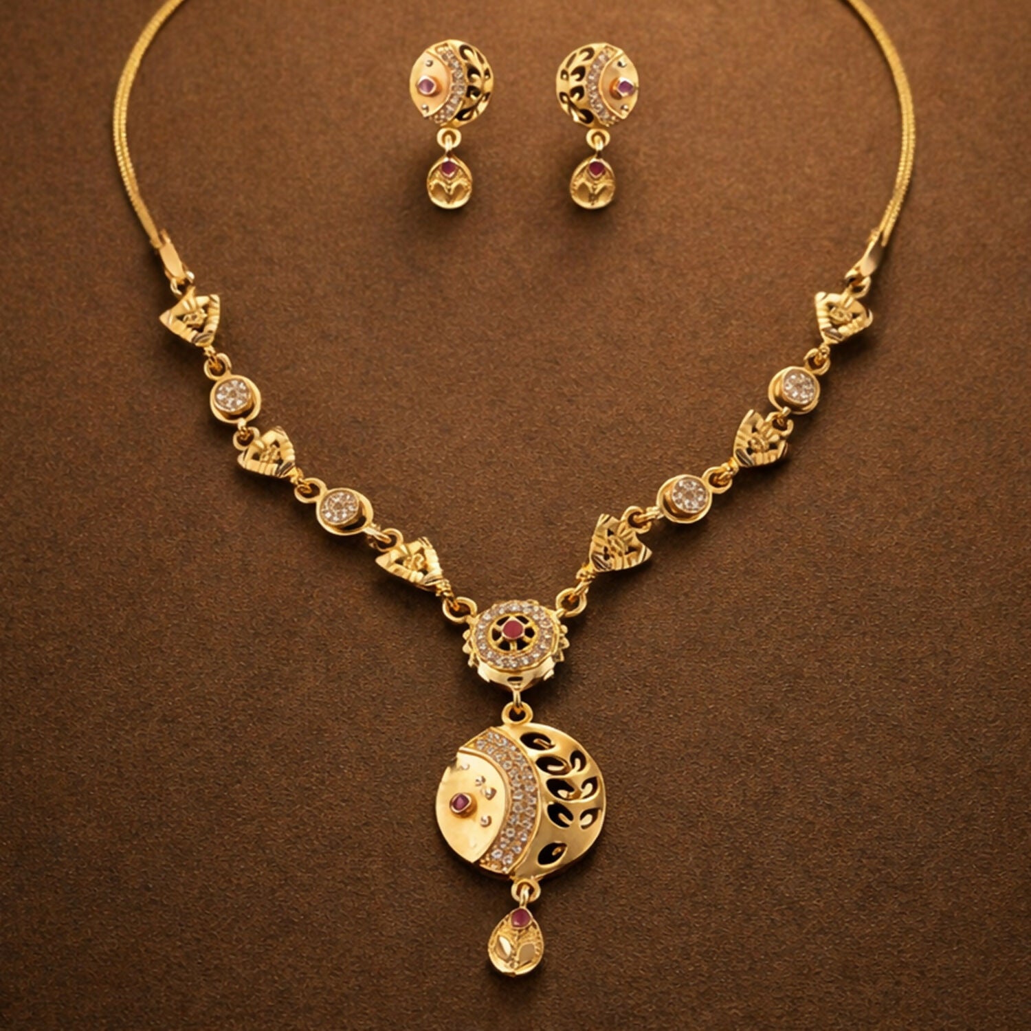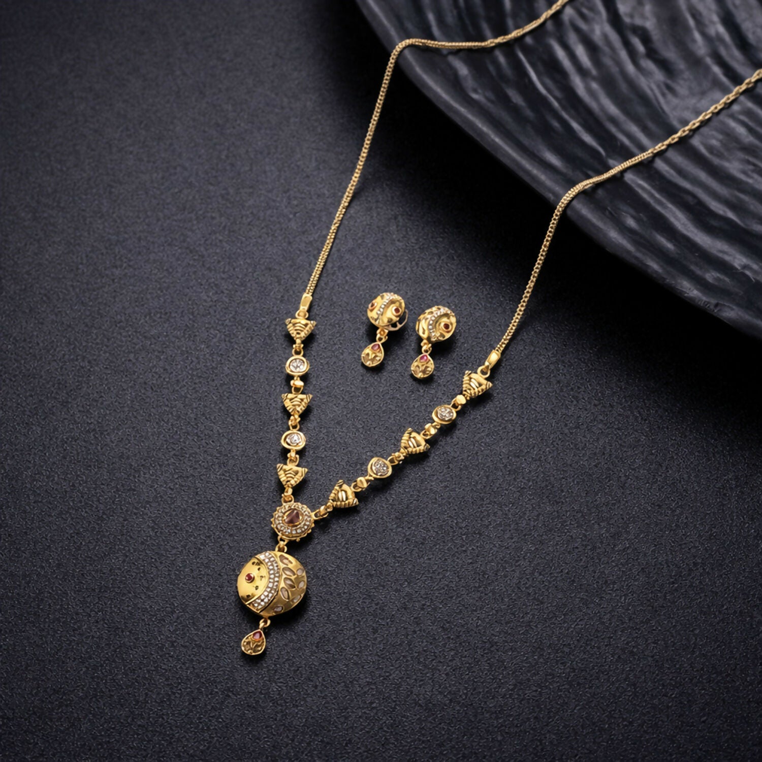 Enhance your style with this beautifully crafted artificial necklace set designed to bring elegance and charm to every occasion. Made with fine detailing and a premium finish, this necklace set offers the luxurious look of traditional jewellery while remaining lightweight and comfortable to wear. The intricate design and sparkling stones make it a perfect choice for weddings, festivals, parties, and special celebrations.
