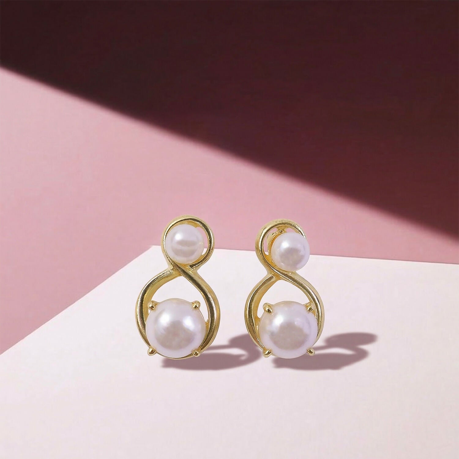 • Design: These earrings feature two lustrous white pearls of different sizes, elegantly cradled in a gold-finished “infinity” or “figure-8” curve. This unique design symbolizes eternal style and grace.