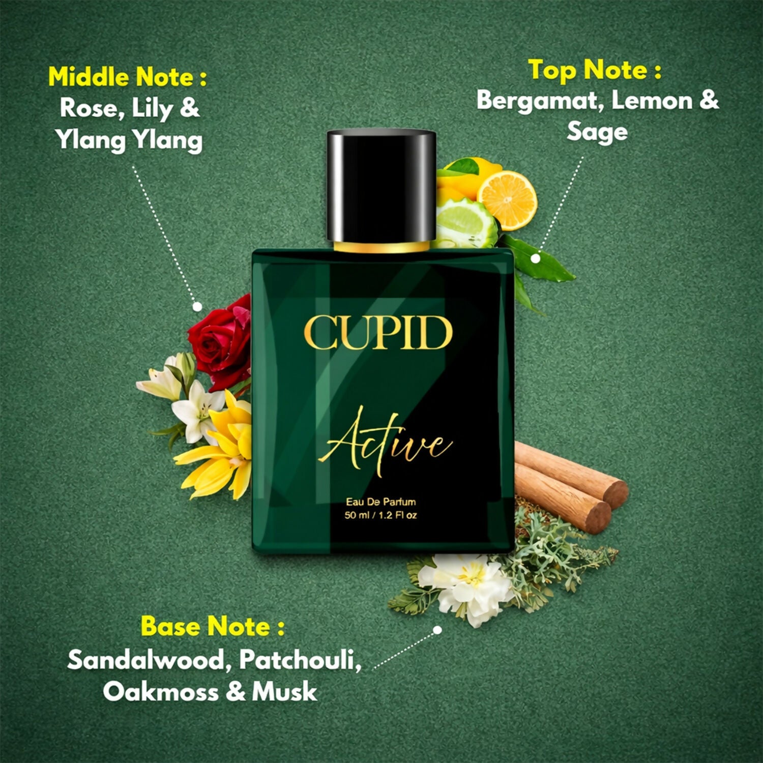 ·       Active perfume by Cupid Ltd is a Parfum, a rich fragrance that gives you an instant burst of energy while keeping you cool, calm and collected, adding a woody confidence to your demeanour.