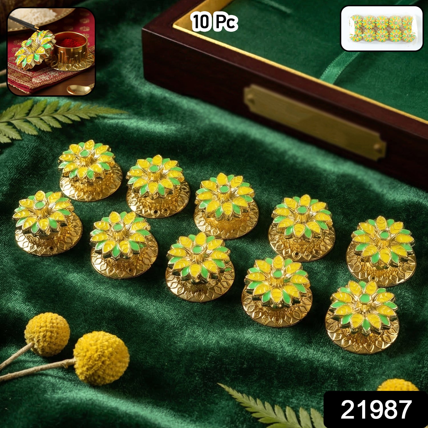 Decorative Kankavati Kumkum Storage Set Floral Design Traditional Puja Kumkum Dabbi for Haldi Kumkum Ceremony Pooja Rituals Festival and Wedding Use – 10 Pc, Mix Design