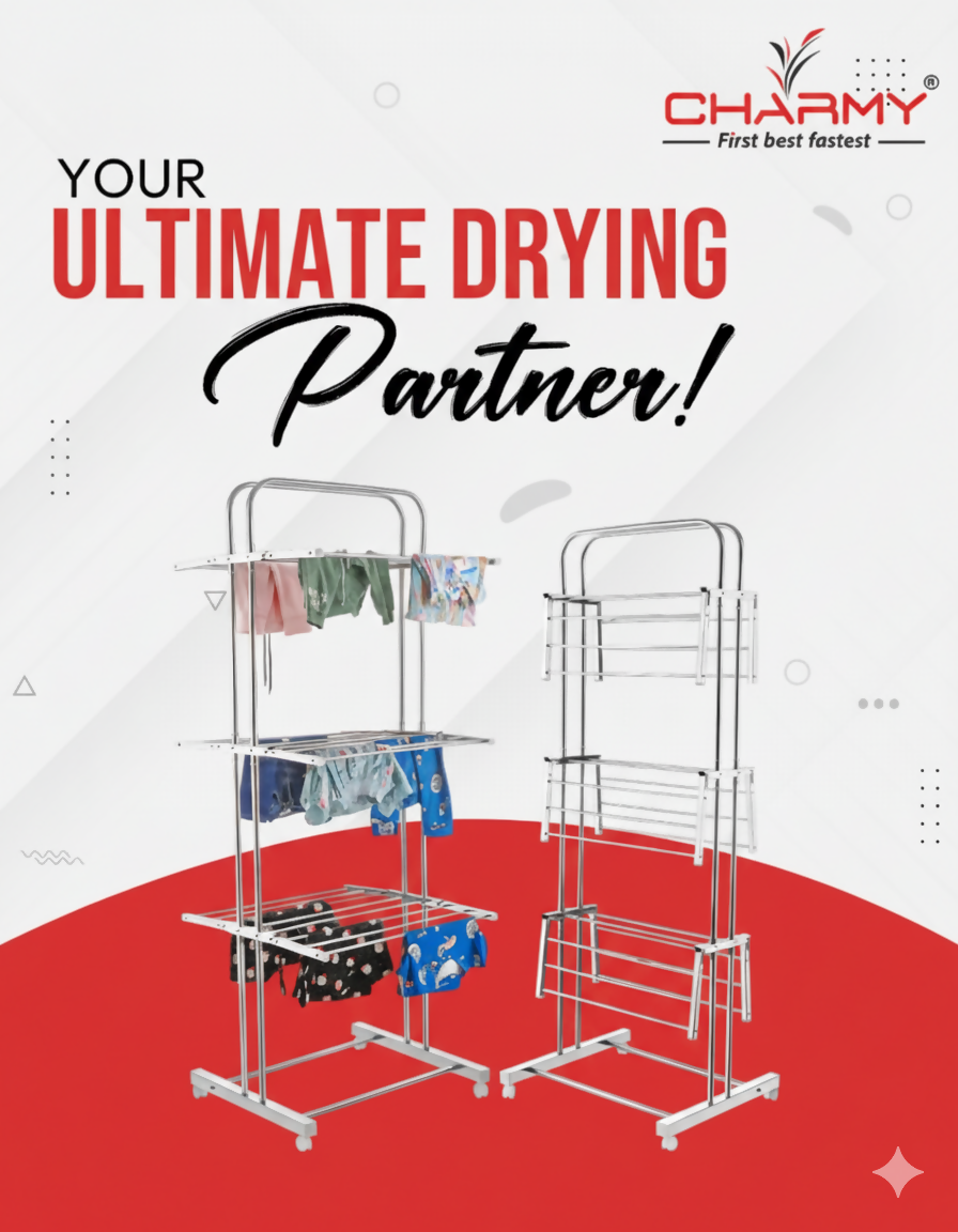 - Multi-Tier Drying Space – 3-tier structure with wide rods provides ample room for clothes, towels, bedsheets, and delicates.