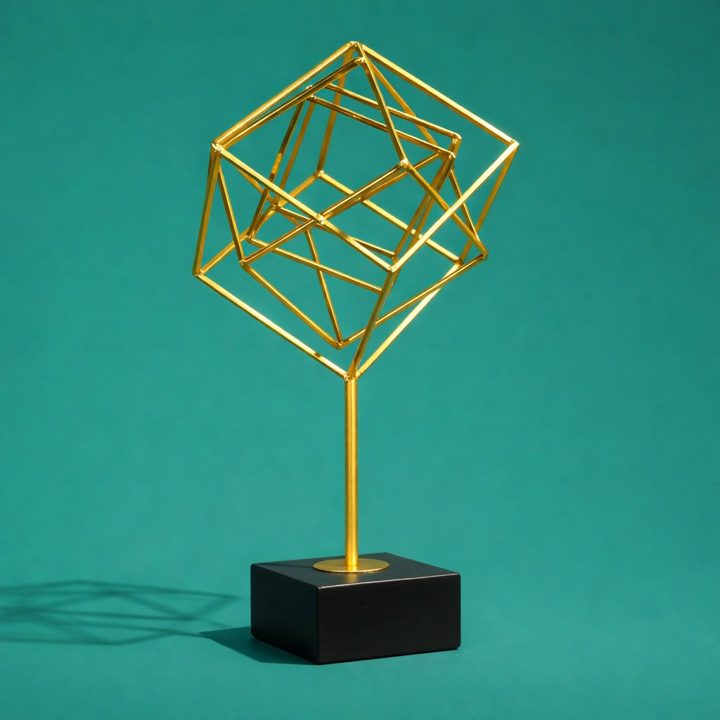 Add a modern artistic touch to your living space with this geometric metal cube sculpture. Designed with an abstract open-frame structure, this decorative showpiece stands elegantly on a sturdy base, making it perfect for tabletops, shelves, and office desks. Its minimalist yet eye-catching design enhances contemporary interiors and serves as a unique conversation piece.