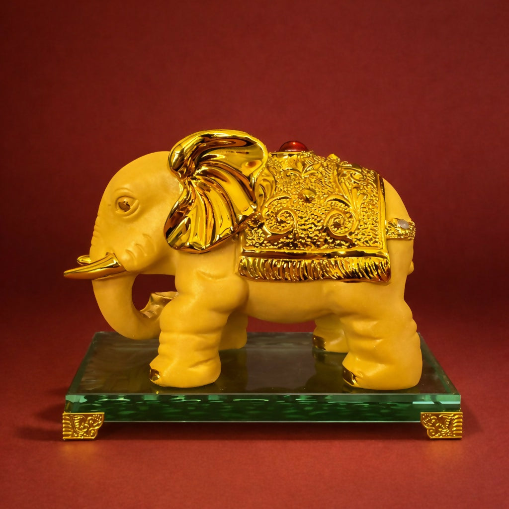 Bring prosperity, elegance, and traditional charm to your home with this beautifully crafted golden elephant decorative showpiece. Designed with intricate detailing