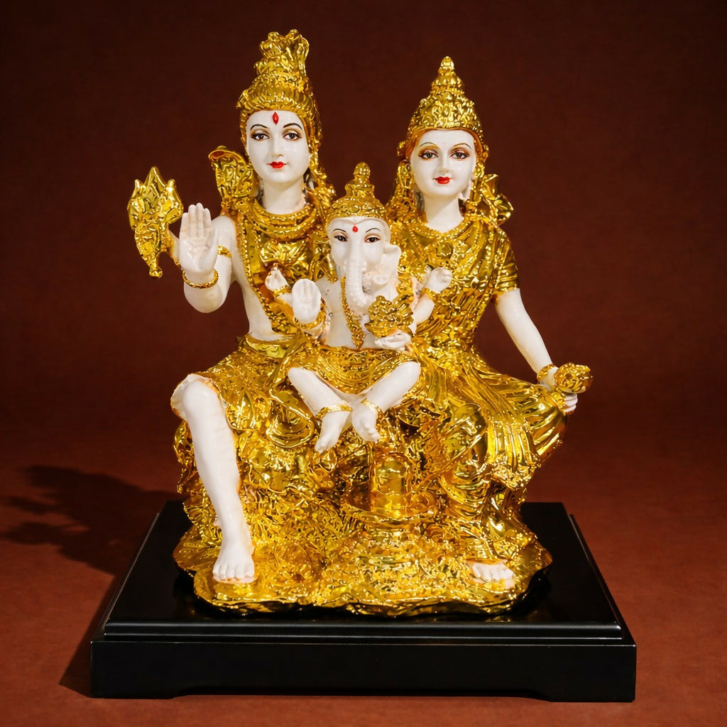 Enhance your home, temple, or office décor with this beautifully crafted Shiv Parivar idol featuring Lord Shiva, Goddess Parvati, and Lord Ganesha. Designed with int
