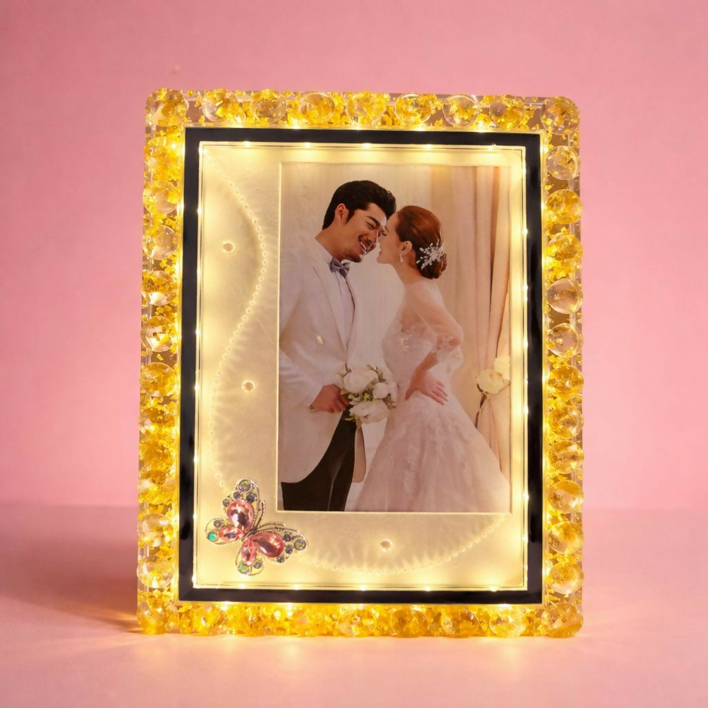led photo frame, crystal photo frame, light photo frame, decorative frame, glowing frame, home decor frame, table frame, gift photo frame, romantic gift, memory frame, bedroom decor, led decor frame