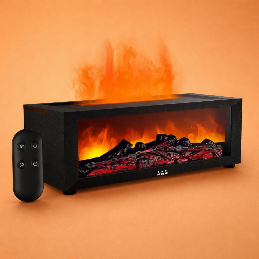 Create a cozy and relaxing ambiance with this LED flame effect humidifier designed to mimic a realistic fireplace glow. Combining modern design with soothing mist technology, this device enhances your space while improving air moisture. With multiple color flame modes and remote control functionality, it is perfect for bedrooms, living rooms, offices, or meditation spaces. A stylish décor piece that blends functionality with aesthetic appeal.