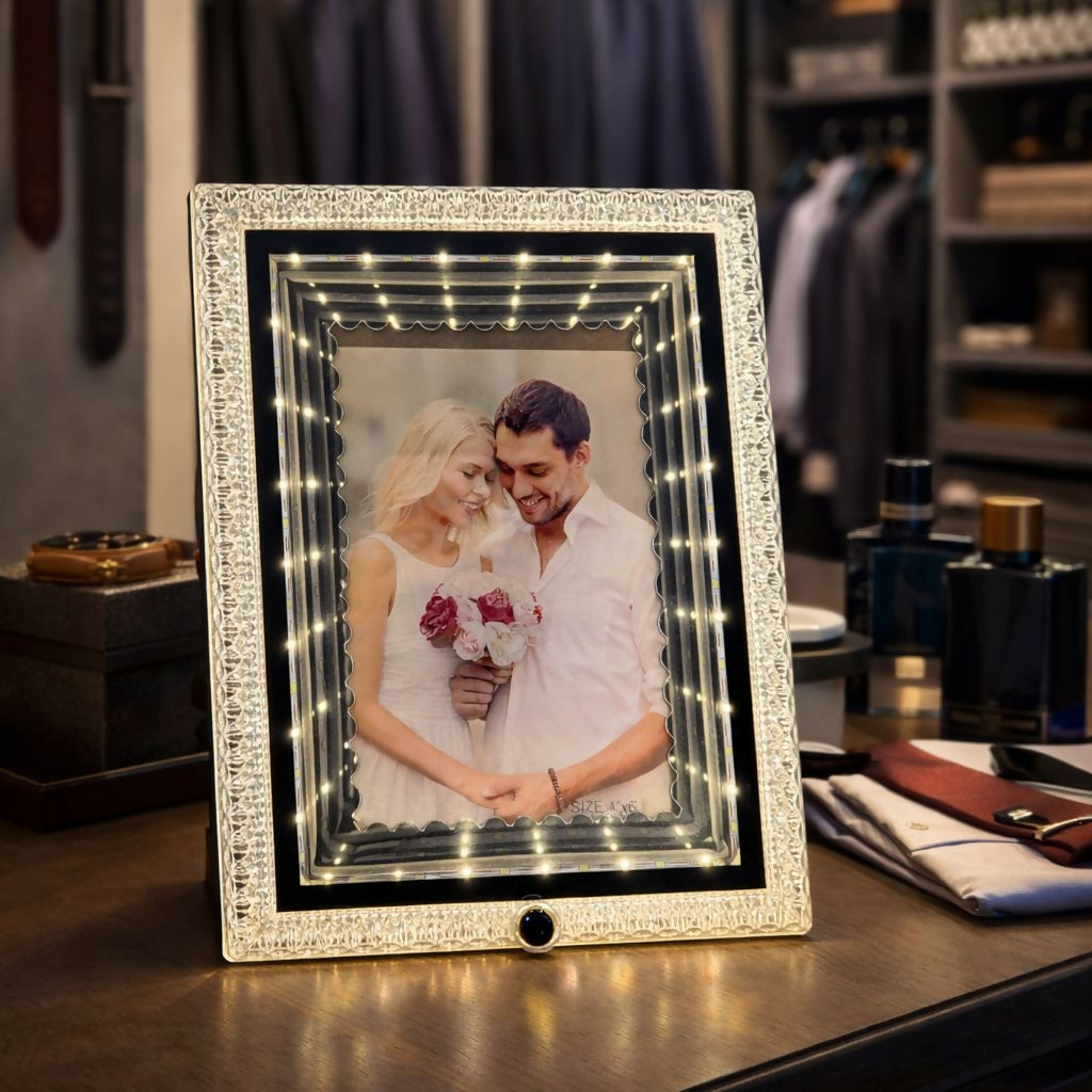 led photo frame 4×6, decorative photo frame, couple photo frame, light frame, wedding gift, anniversary gift, romantic decor, glowing photo frame, table decor item, memory frame, home decor frame, led frame decor, premium photo frame, gift for couple, bedroom decor