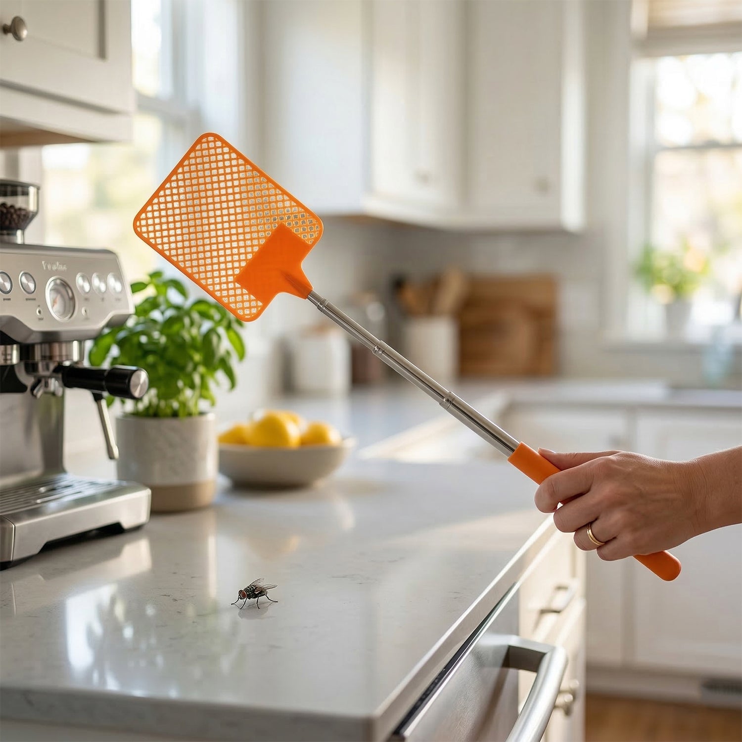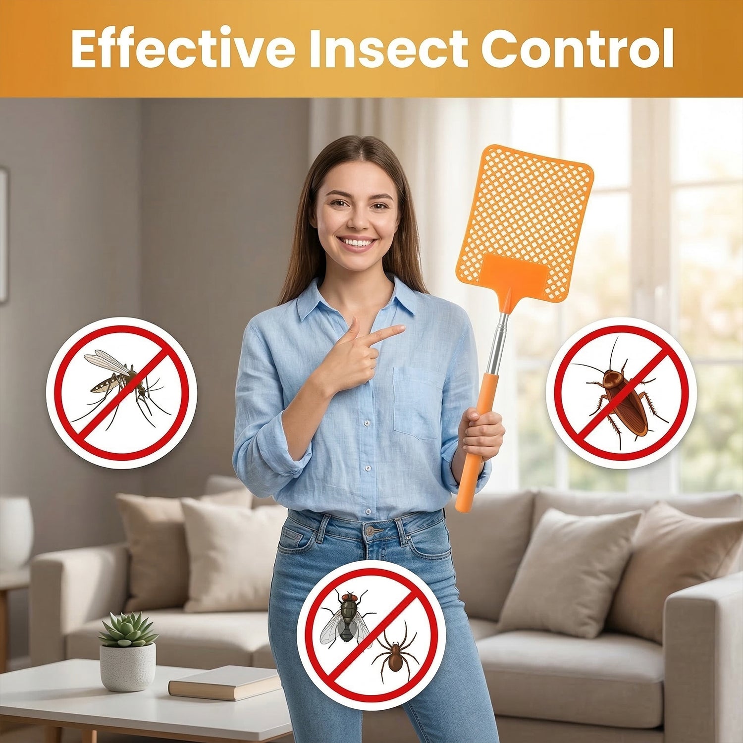 This practical fly swatter is designed to help you easily eliminate flies, mosquitoes, and other flying insects with minimal effort. Featuring an extendable handle, it allows you to reach distant or hard-to-access areas without strain. The lightweight yet sturdy construction ensures comfortable handling while delivering effective performance. Its wide swatting surface increases hit accuracy, making it ideal for quick and efficient insect control. A must-have tool for maintaining hygiene and comfort in everyday living spaces.