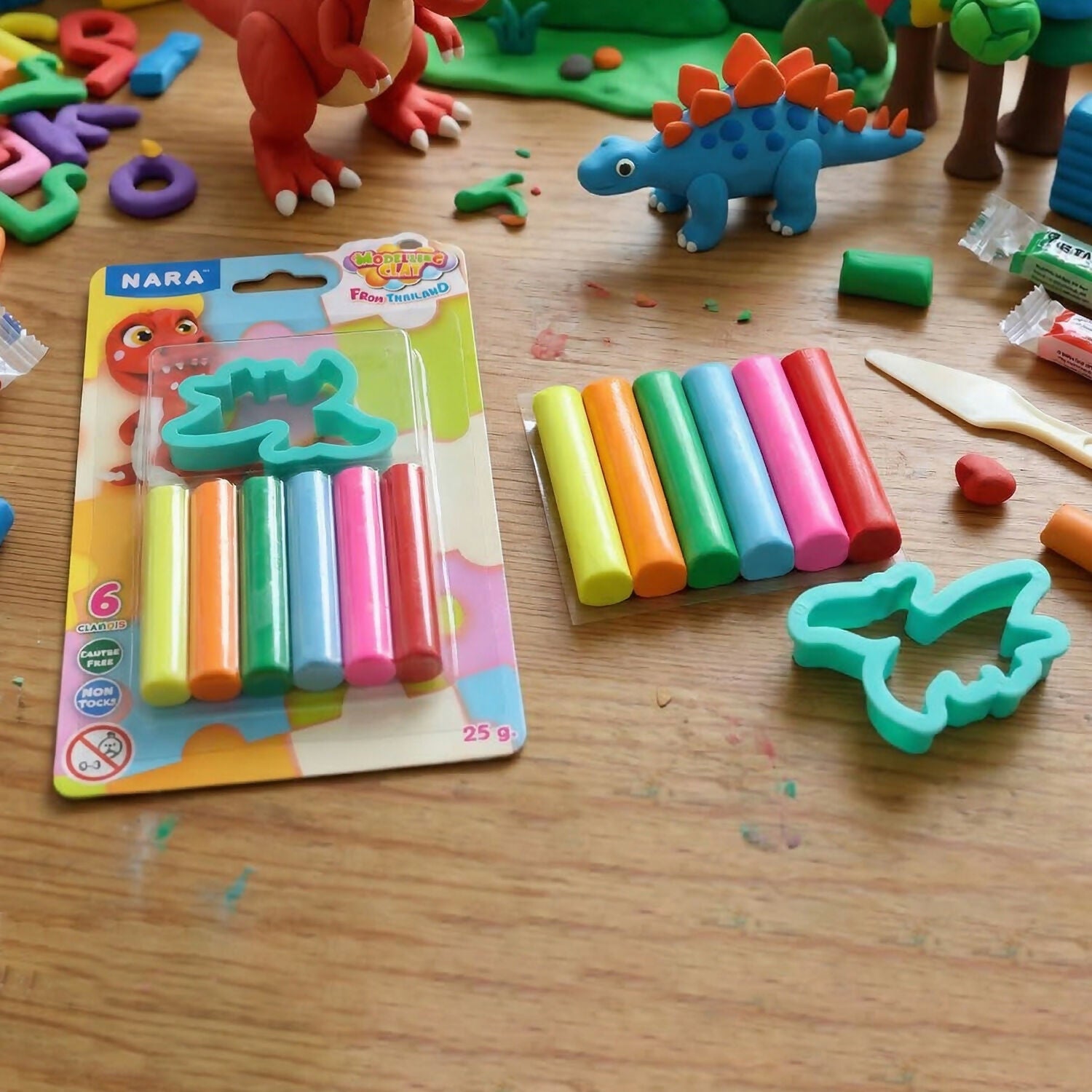 Nara 6 Color Modelling Clay Set with Dinosaur Cutter Creative Play Dough Kit for Kids (25 Gm)