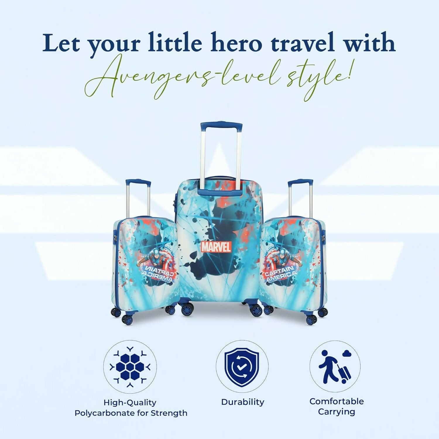 - 【PRECIOUS COLOR】— Vibrant turquoise blue color with Captain America-themed design, perfect for young fans of the superhero. A unique and eye-catching luggage option that stands out from the crowd, making it a great gift for boys who love Captain America.