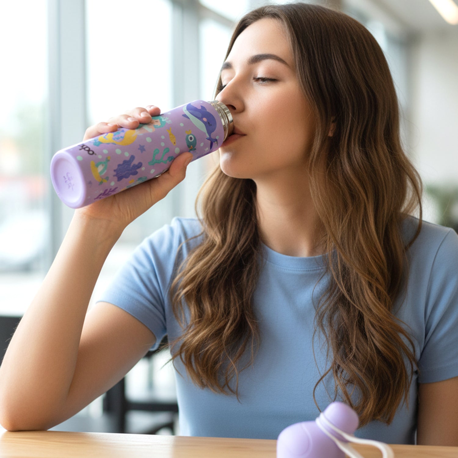 Pexpo Pico Art insulated water bottle is designed to provide a stylish and practical hydration solution for everyday use. The bottle features an attractive art printed design that adds a fun and vibrant appearance while remaining suitable for daily routines such as school, travel, outdoor activities, and regular hydration. Its insulated construction helps maintain the temperature of hot and cold beverages for longer durations. The secure leakproof lid and flexible carry loop make it easy to carry and use while on the move. With its durable and reusable design, this bottle offers a convenient and reliable way to stay hydrated throughout the day.