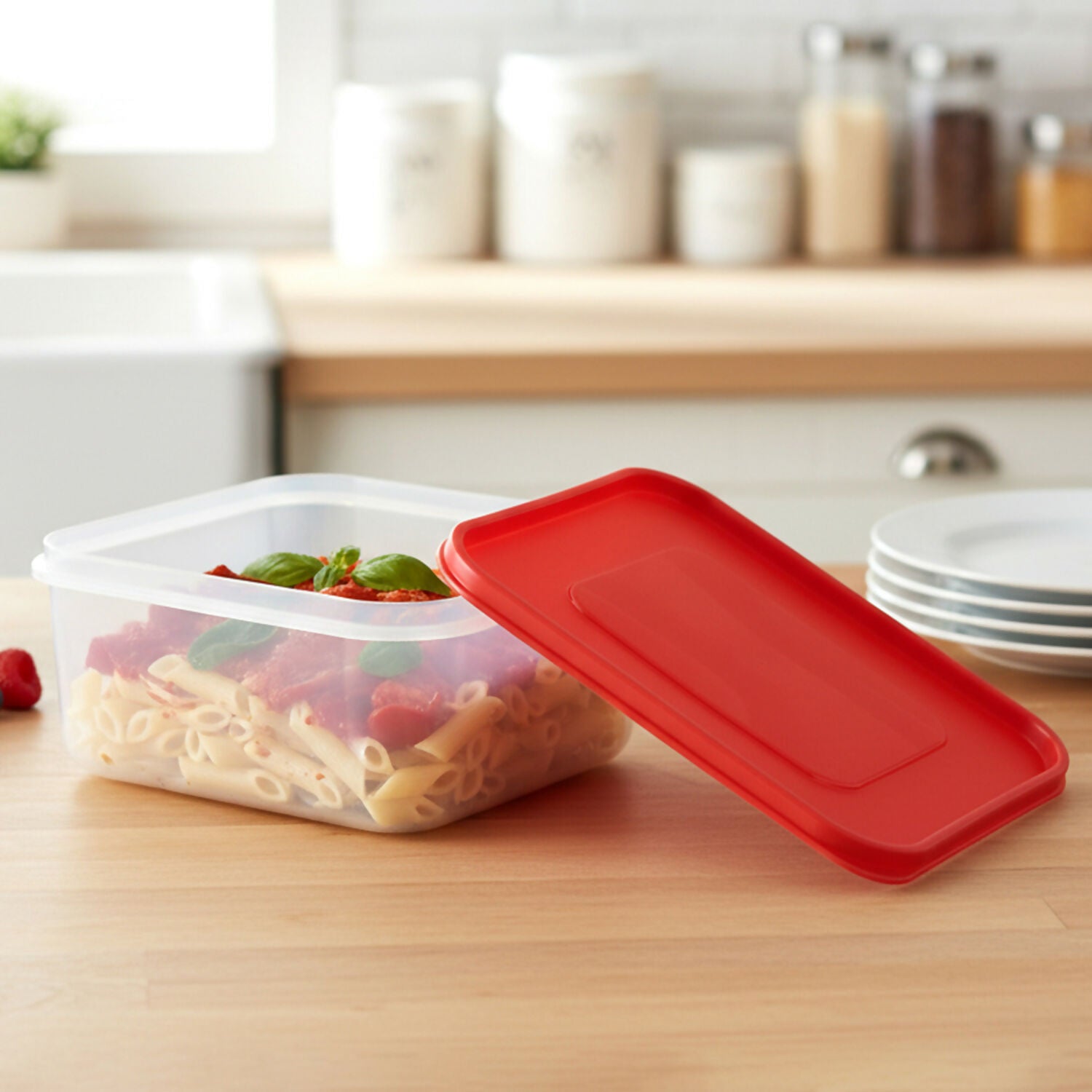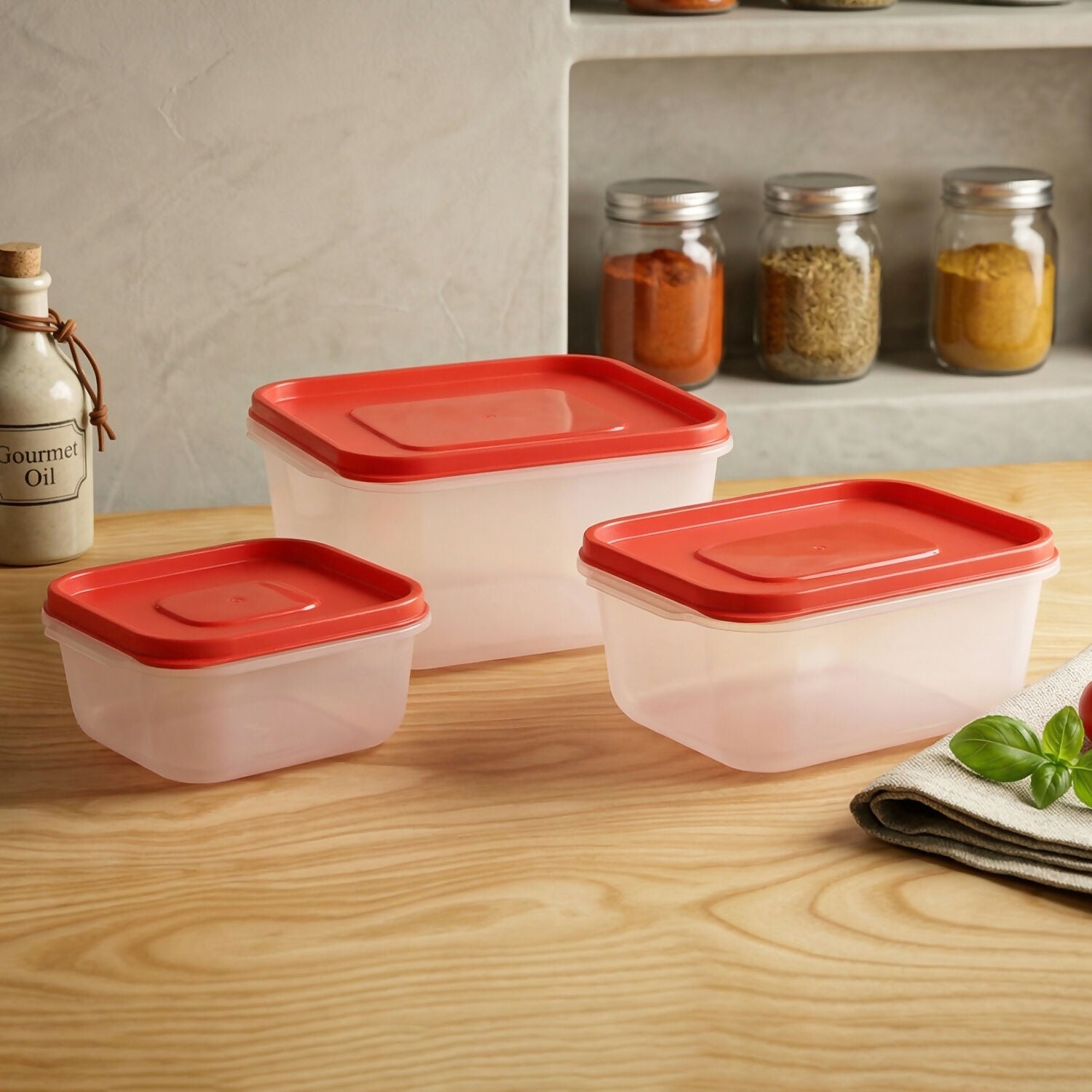 Apne kitchen ko organize kariye is premium 3-piece plastic storage container set ke saath. Ye set alag-alag sizes mein aata hai jo aapki har storage zaroorat ko poora karta hai—chahe wo snacks ho, bacha hua khana (leftovers), ya dry fruits.
