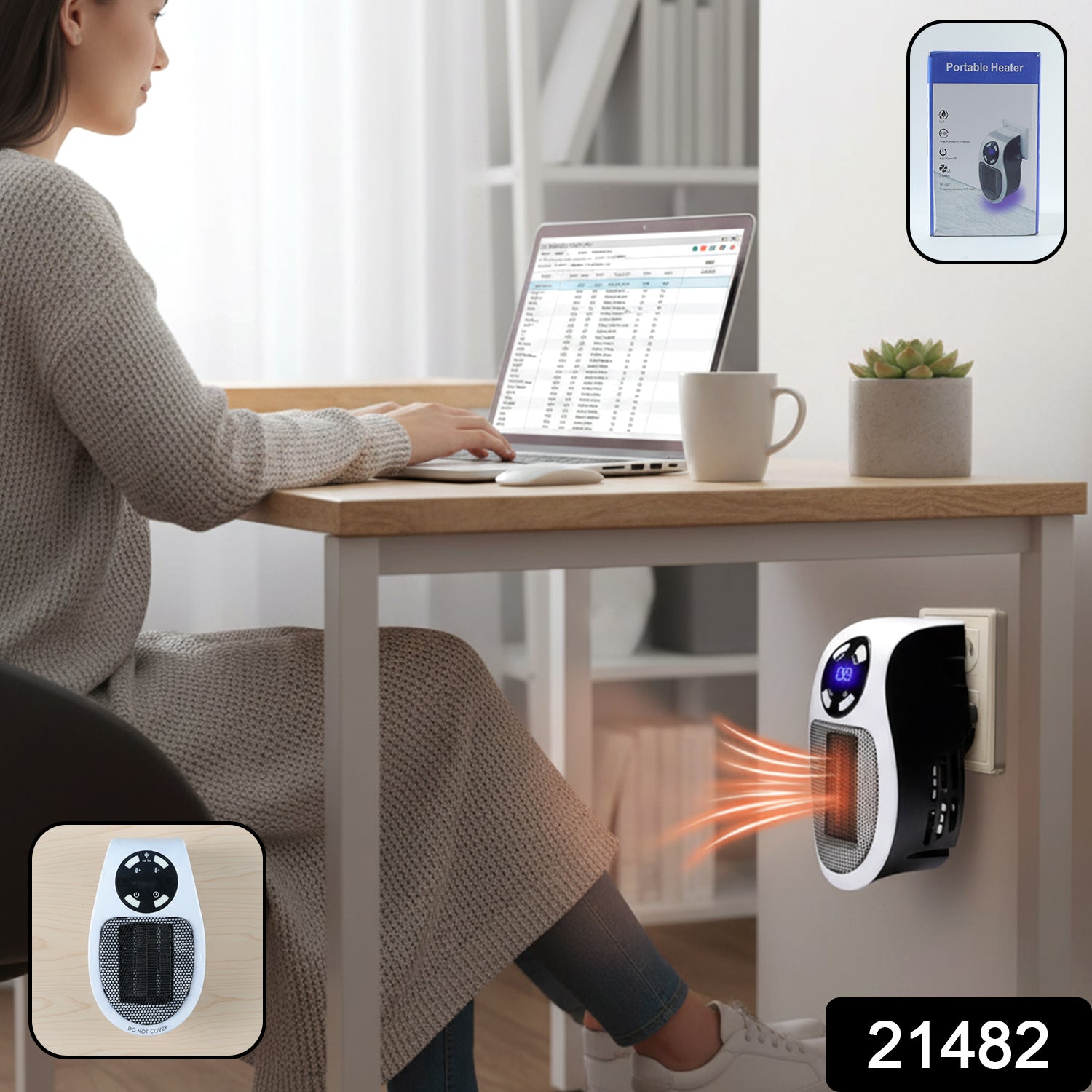 The lightweight design makes this electric heater portable and easy to use anywhere. If you are searching for a portable room heater, mini plug-in heater, or desktop electric heater, this heater is a practical choice.