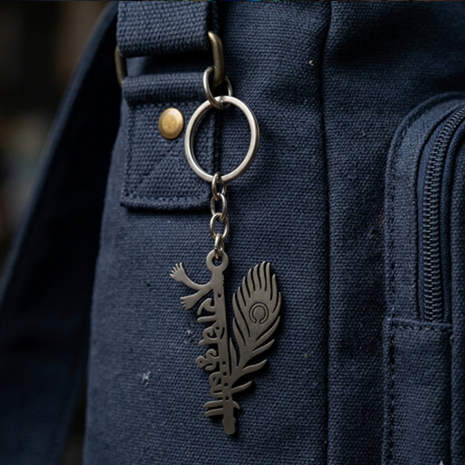 This beautifully crafted metal Radhe Krishna keychain features an elegant design inspired by Lord Krishna, highlighted with a detailed peacock feather motif and artistic engraving. The combination of spiritual symbolism and modern design makes it a perfect accessory for everyday use. Made with durable metal, it ensures long-lasting performance while maintaining a premium and stylish look. The sleek finish enhances its appeal, and the strong key ring securely holds your keys. Lightweight and easy to carry, this keychain is ideal for personal use or as a thoughtful gift for loved ones.