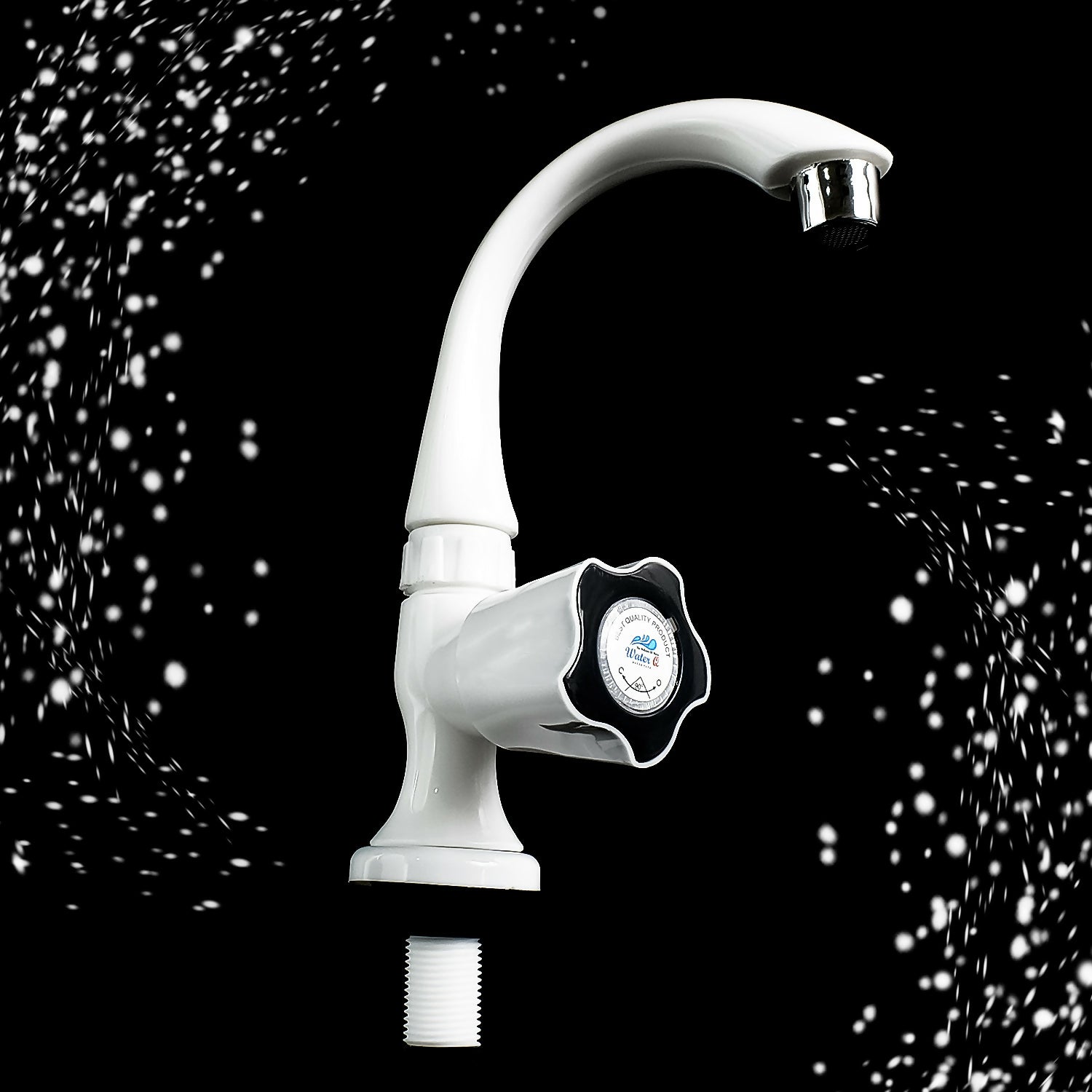 Upgrade your sink area with this sleek and functional Plastic Pillar Cock Tap with Long Curved Neck, designed for table-top or counter installations. Made from durable ABS plastic, this faucet features a stylish chrome tip, a smooth-turn control knob, and a curved flow neck that gives it both reach and elegance. Ideal for use in kitchens, wash basins, and utility zones, this tap offers leak-free performance, resistance to rust and stains, and long-term reliability, all while being easy to install and maintain