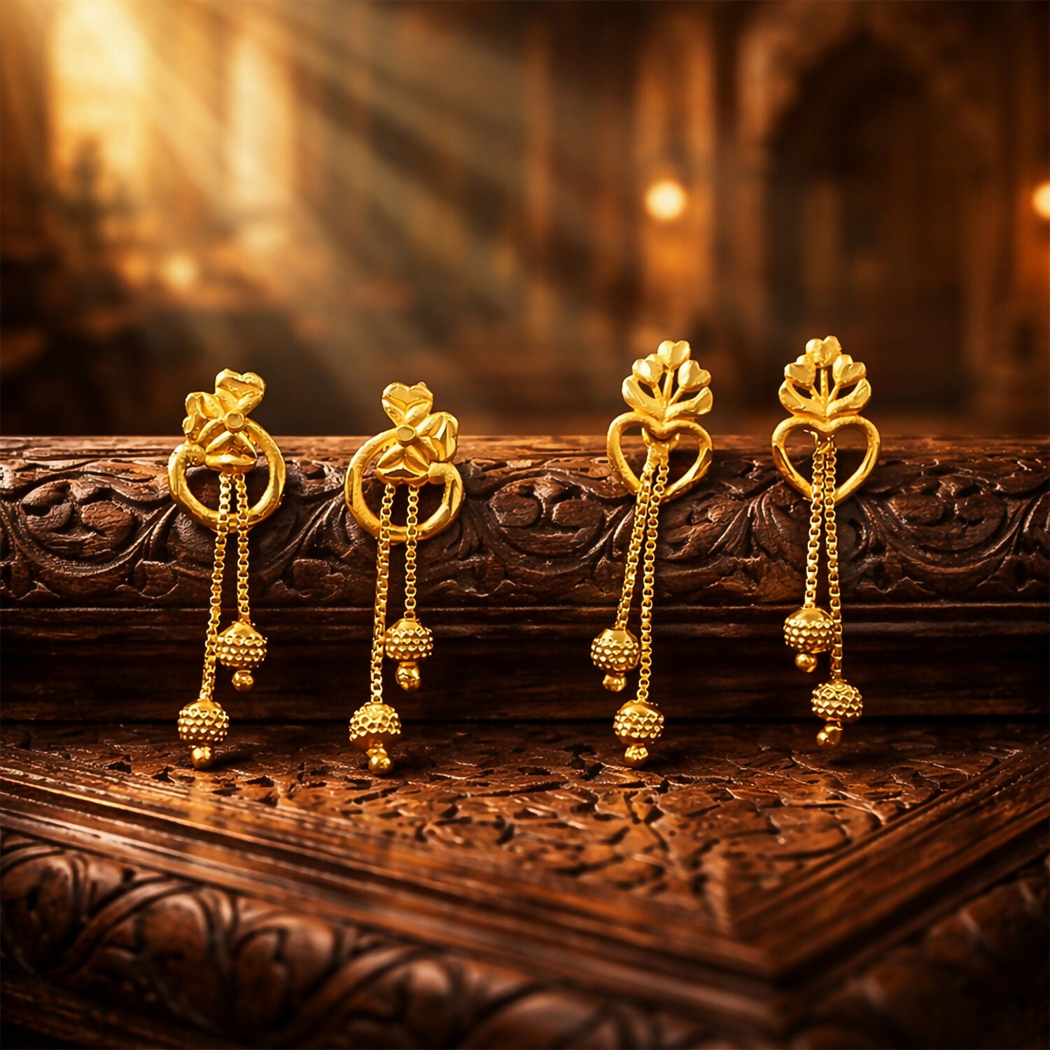 Perfect for weddings, festive celebrations, cultural events, or elegant evening wear, these earrings pair effortlessly with traditional outfits such as sarees, lehengas, and salwar suits, while also adding a sophisticated accent to modern attire. Their graceful silhouette and intricate details make them an ideal accessory for those who appreciate classic jewelry with artistic craftsmanship.