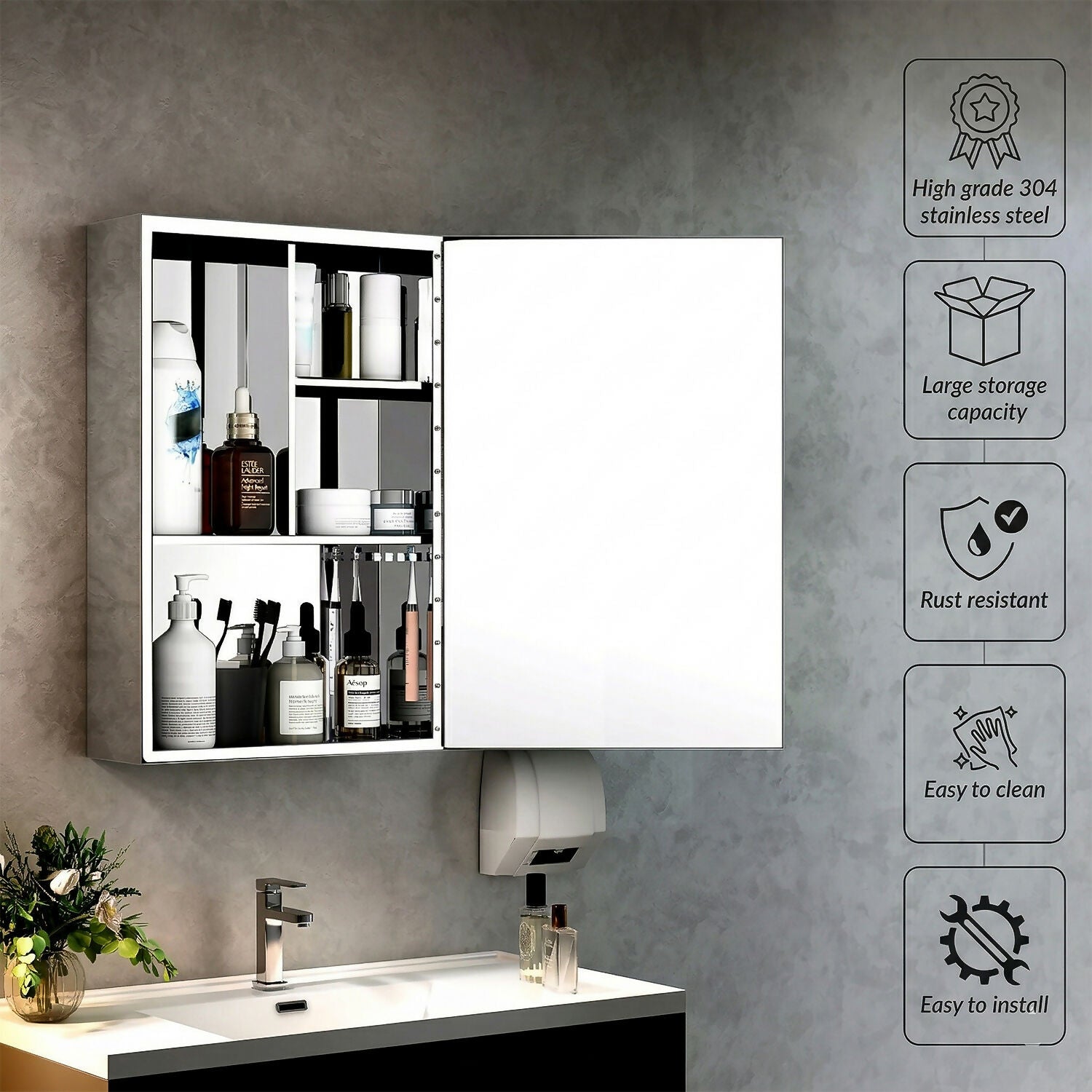 Wall Mounted Mirror Cabinet with Storage, HD Mirror Door Bathroom Organizer with Multi Shelf Storage & Modern Design