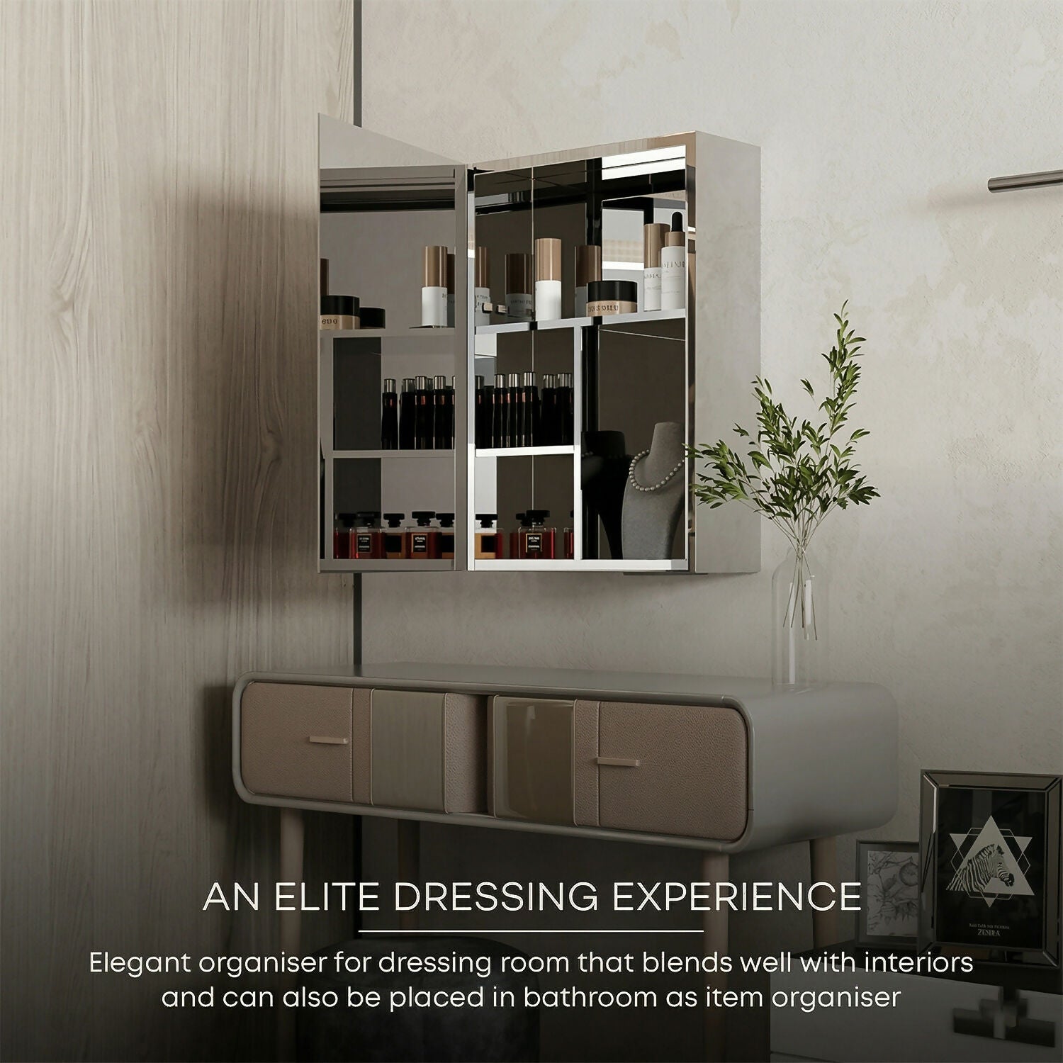 •  High-Quality Stainless Steel (SS) Cabinet: The cabinet is entirely constructed from high-grade, rust-proof, and durable Stainless Steel, making it ideal for the humid bathroom environment. It ensures long-lasting performance and unmatched sturdiness.