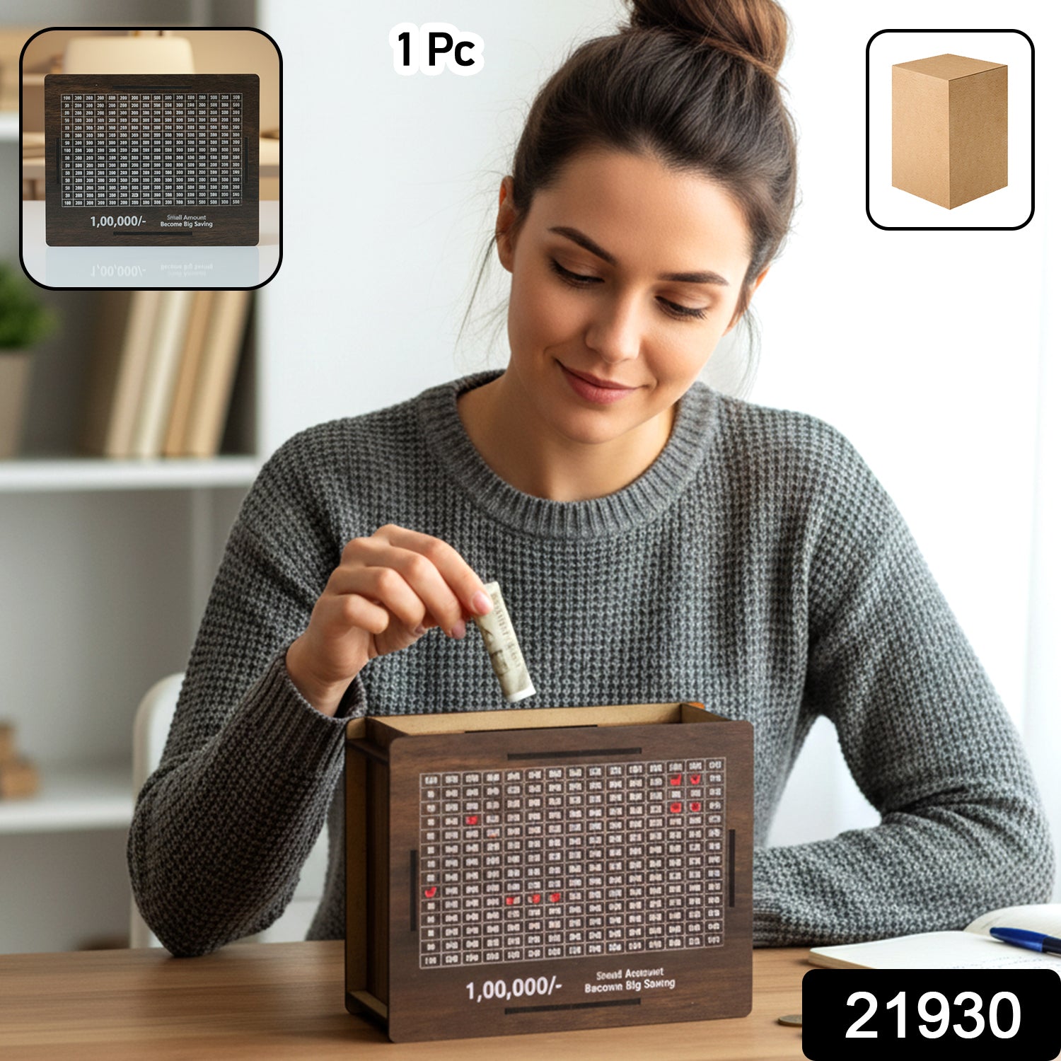 This wooden big piggy bank is designed to help build a consistent saving habit while keeping money organized in a secure storage box. The sturdy wooden structure provides durability and a classic appearance suitable for home or office use. It features a convenient deposit slot on the top that allows easy insertion of cash or folded notes. The spacious interior provides ample storage for accumulating savings over time. Its decorative wooden design makes it suitable to place on desks, shelves, or study tables while encouraging responsible money management. This piggy bank is ideal for both children and adults who want to track and grow their savings gradually.