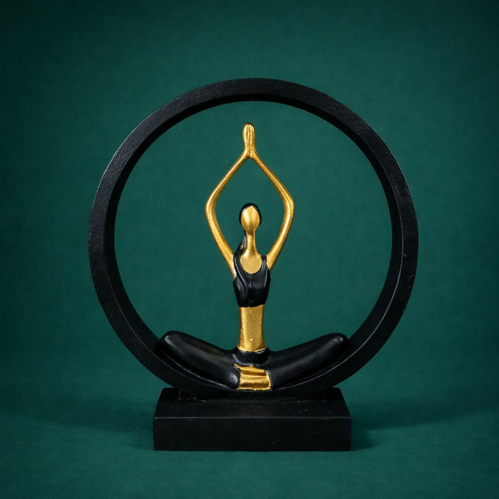 Enhance the calm and elegance of your space with this stylish yoga meditation figurine showpiece. Designed with a graceful yoga pose inside a circular frame, this decorative statue represents balance, mindfulness, and inner peace. The elegant black and gold color combination gives the sculpture a modern and luxurious look that complements contemporary interiors. Perfect for decorating living rooms, office desks, yoga studios, meditation corners, or shelves, this artistic showpiece creates a peaceful and inspiring atmosphere. It also makes a thoughtful gift for yoga lovers, wellness enthusiasts, and home décor collectors.